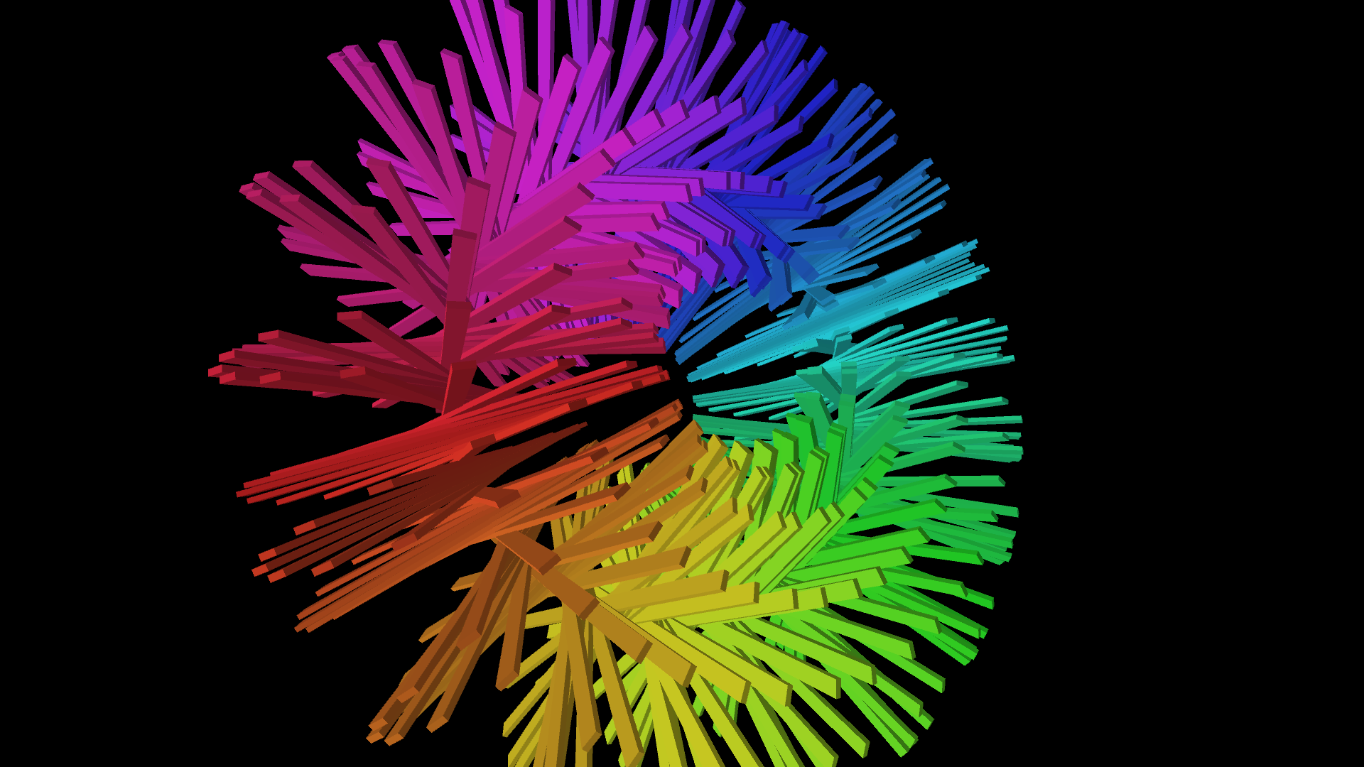 These stills are framegrabs from a music visualizer I wrote for Soundcheck. Since I had separate channels straight from the mixing board, I was given unprecedented access to the individual instruments that made up the tracks. Each instrument was visualized with a different color and ruleset.