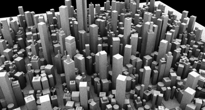 Vrooom was my favorite project from college, and my first large-scale attempt at procedural geometry creation. I had been tinkering with "cbuild," a script I wrote for generating cityscapes. Eventually, I combined the resultant geo, more scripts that actually animated blocks in and out of place, and a terrific score by Scott Petersen to create this film.